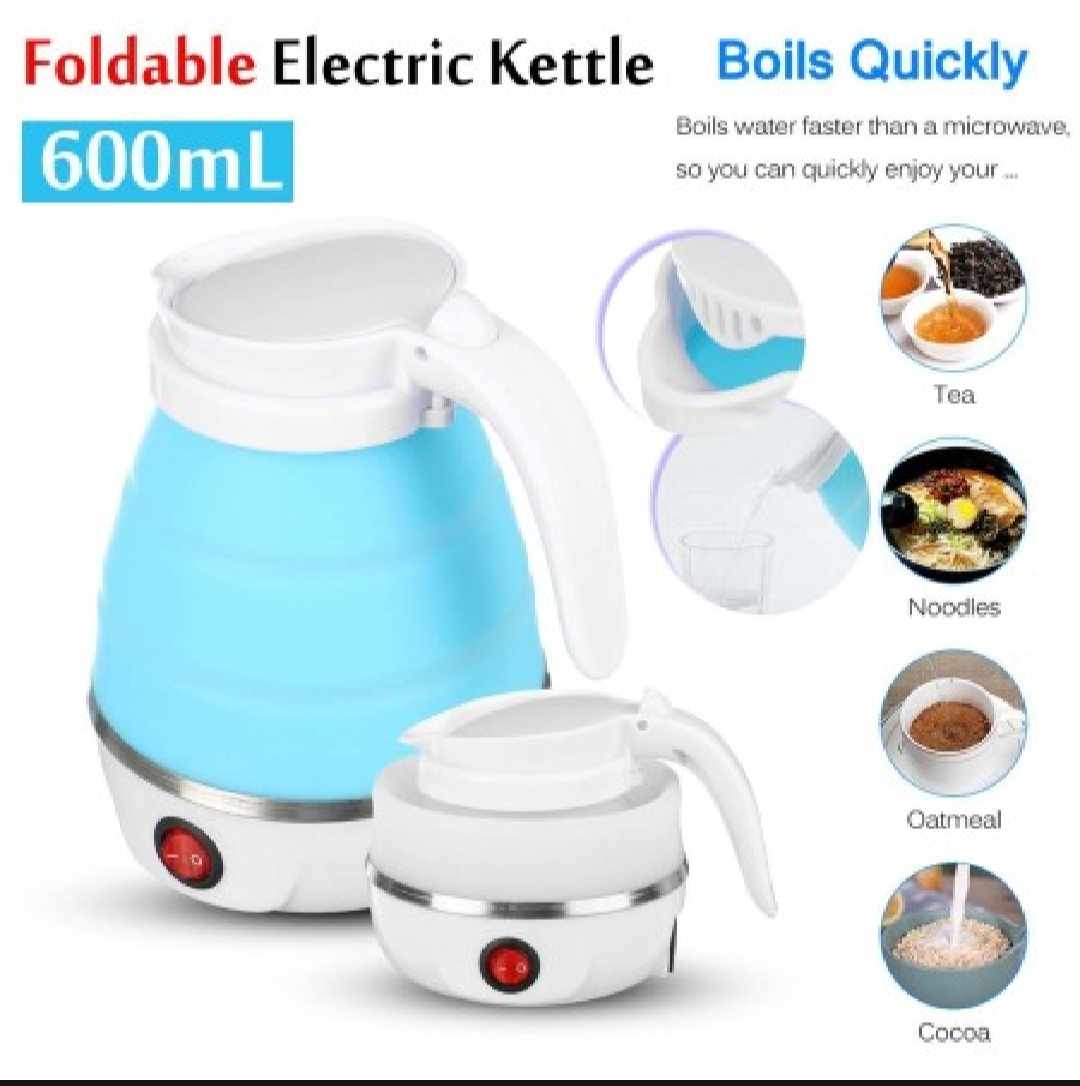 A compact, foldable electric travel kettle made from food-grade silicone, featuring dual voltage (110–240V), 800W heating power, 600ml capacity, and fast boiling in just 4 minutes. Perfect for travel, hotel stays, camping, and office use. Safe, lightweight, BPA-free, and easy to carry.